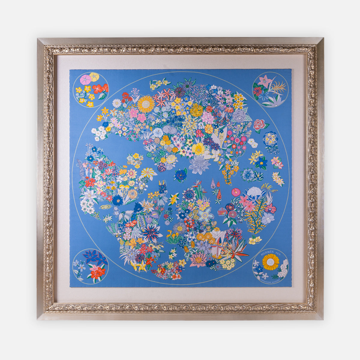A celebration of botanical elegance and intricate cartography, Planifleurs by Hermès invites you into a world where nature meets precision. Designed by Christine Henry, this stunning square scarf weaves together elements of floral illustration with classical map motifs, creating a mesmerizing landscape that blooms across pure silk.